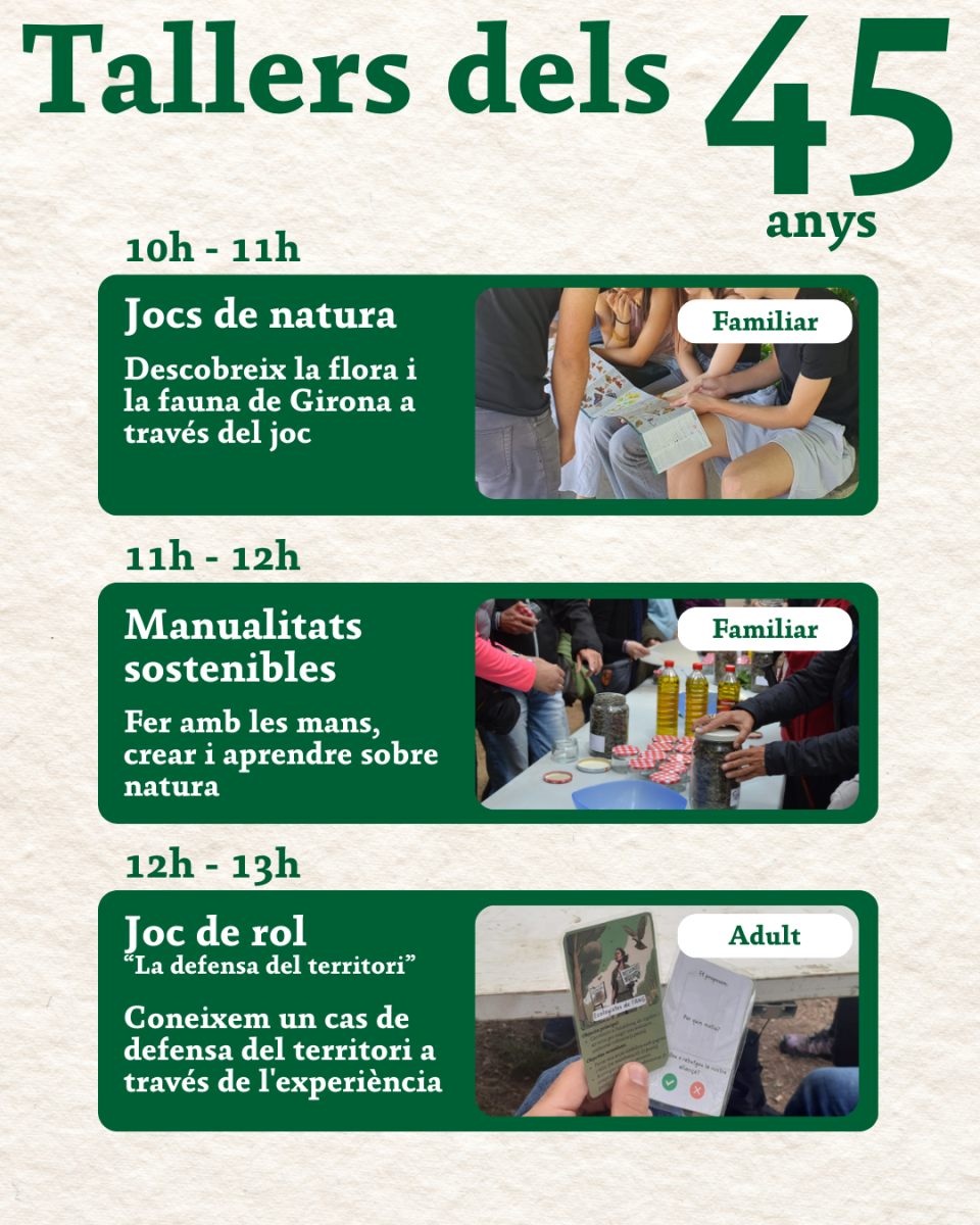 10-12h – Tallers i itinerari del 45 anys