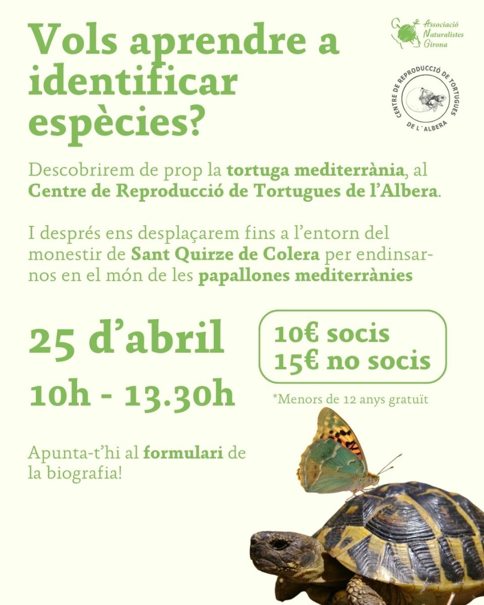 Després, ens desplaçarem fins a l’entorn del monestir de Sant Quirze de Colera per endinsar-nos en el món de les papallones mediterrànies. Aprendrem a identificar-les i buscarem autèntiques joies alades com la pandora, l’escac ferruginós o la blanqueta de la mitja lluna.